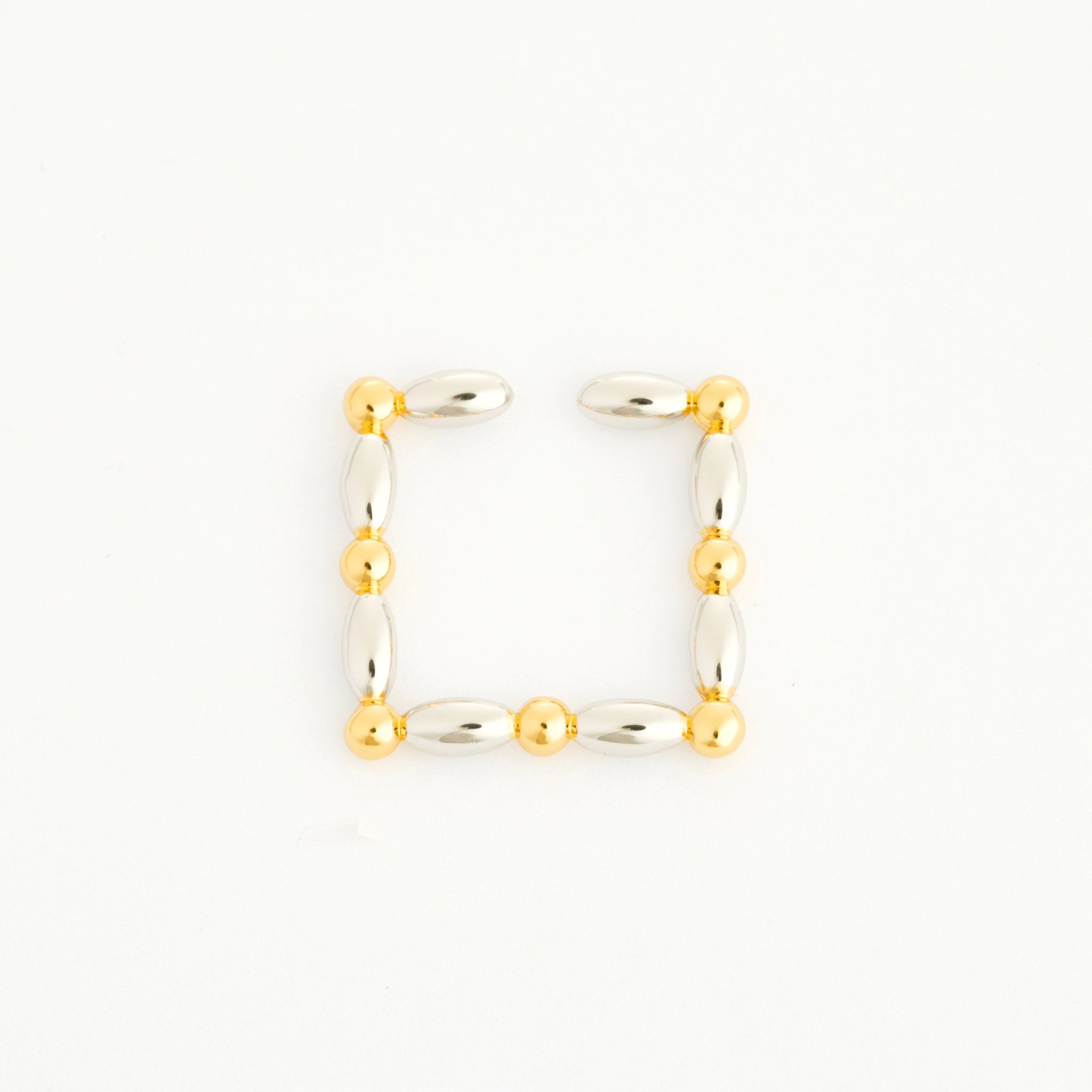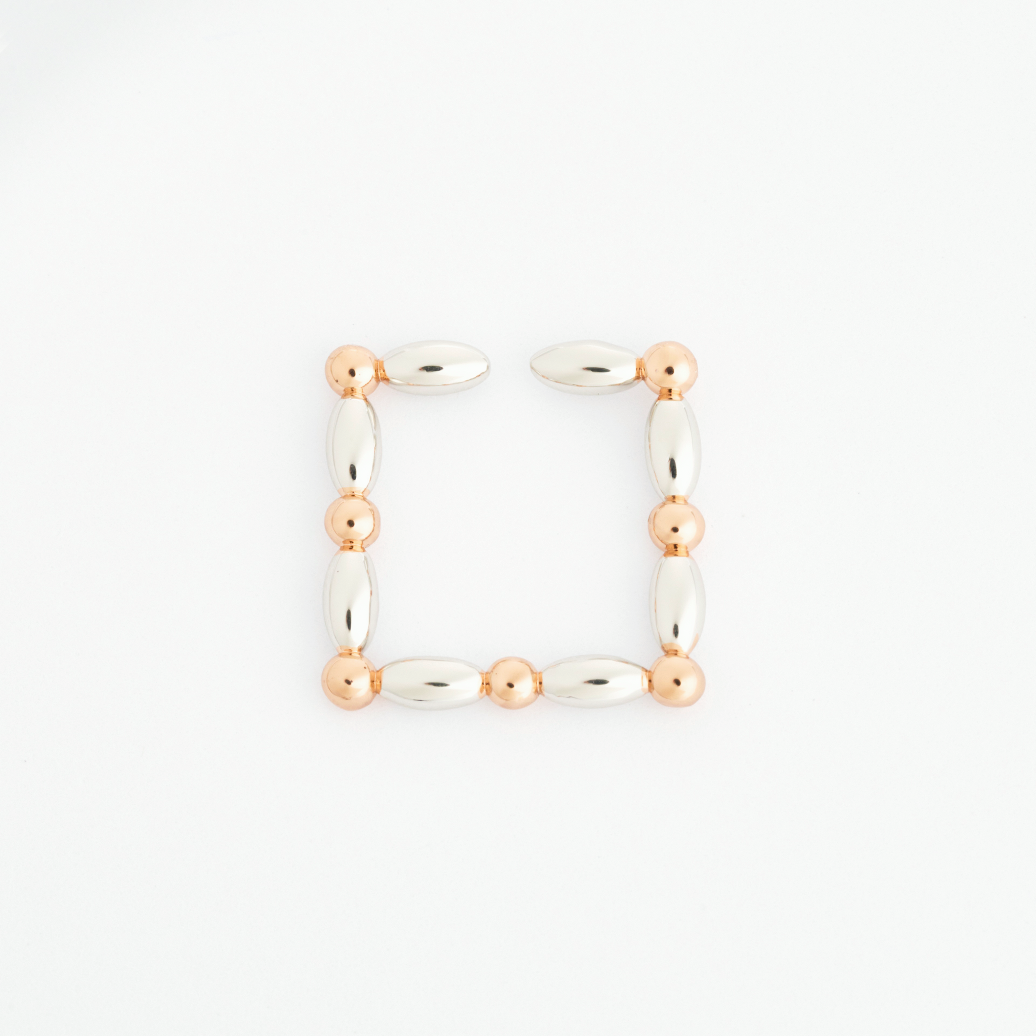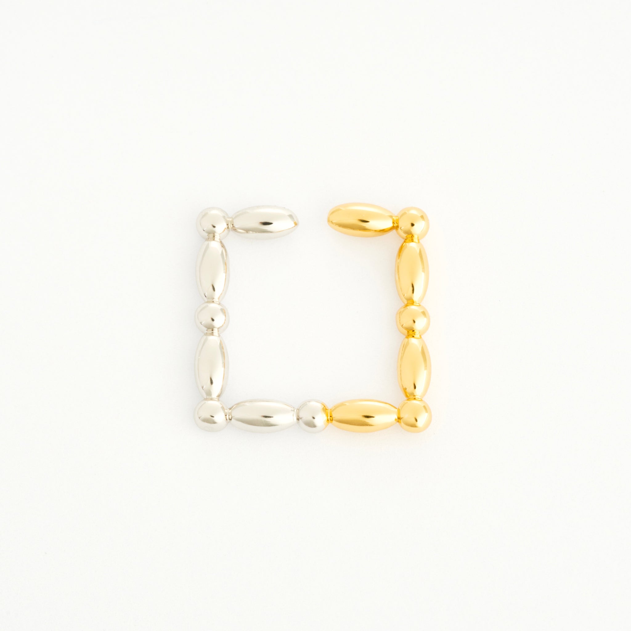 Inspired by beaded silhouettes, this design softens clean geometric lines into smooth, organic curves. The mixed metal tones add a subtle shimmer and dimension with every movement, while its open-ended structure lets you wear it as either an ear cuff or a ring for effortless everyday styling.